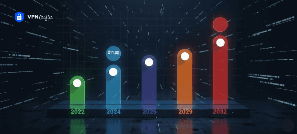 VPNs are no longer just a tool for tech enthusiasts – they are a mainstream necessity. The VPN industry has evolved into a multi-billion-dollar market with enormous growth potential. The global VPN market, valued at $45 billion in 2022, is projected to soar to $350 billion by 2032, according to Statista.